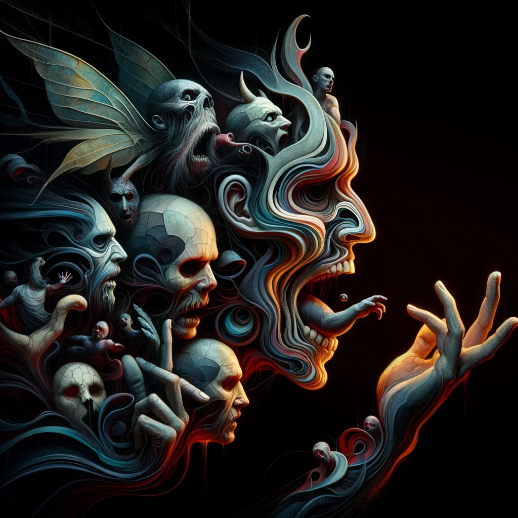 The image has been created to symbolically represent the concept of deceit and the absence of truth, as described in the biblical quote. It features abstract and metaphorical elements that convey the idea of darkness associated with lies and manipulation.