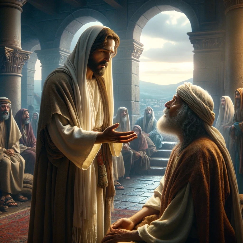 Once, a wise and learned man, Nicodemus, approached a teacher of great insight, seeking to understand the deeper truths of existence. He recognized that the teacher’s wisdom and the wonders he performed could only come from a profound connection with the divine source. The teacher spoke of a profound transformation, saying that to truly understand the realm of higher consciousness, one must experience a rebirth of spirit and perspective.