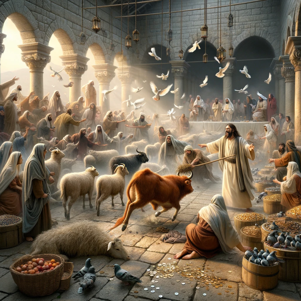 As the time of Passover approached, the teacher went to Jerusalem. There, he found the sacred temple cluttered with commerce and external distractions. In a symbolic act, he cleansed the temple, driving out those who had turned a place of inner reflection into a marketplace. This act was not just about the physical space but was a metaphor for the cleansing of our inner temple – the heart and mind – from the distractions and material attachments that hinder our spiritual growth.