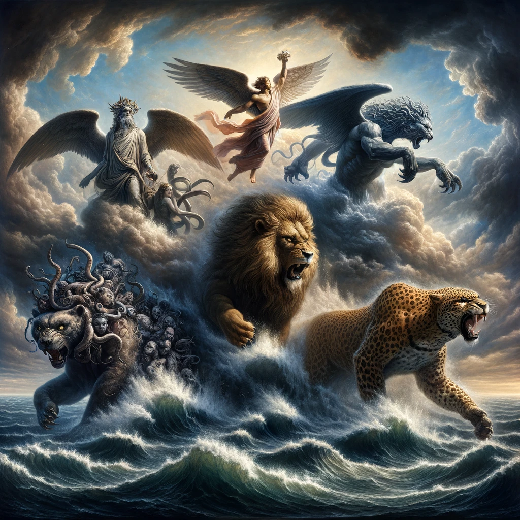 5. A terrifying beast denotes overwhelming, destructive power.