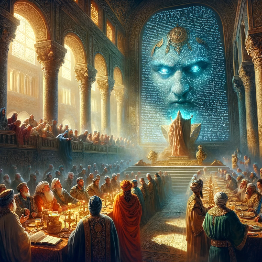 5. The king, deeply troubled by this inexplicable event, called for his wise men to interpret the writing.
